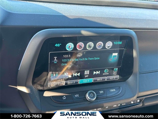 - Audio system, Chevrolet MyLink Radio with 8" diagonal color touch-screen, AM/FM stereo with seek-and-scan and digital clock includes Bluetooth® streaming audio for music and select phones; voice-activated technology for radio and phone; featuring Apple CarPlay capability for compatible phone