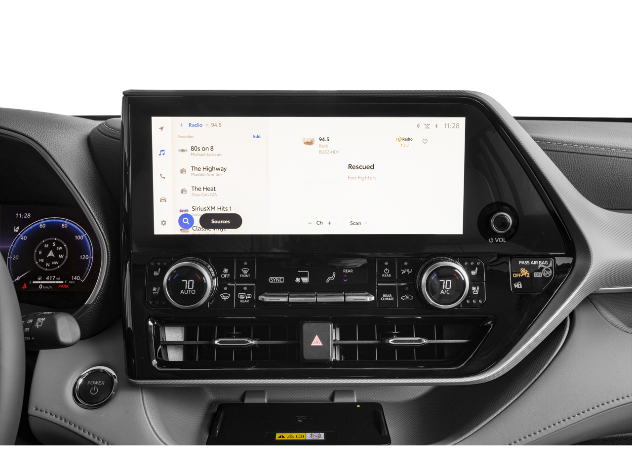• Radio w/Seek-Scan, Clock, Speed Compensated Volume Control, Steering Wheel Controls, Voice Activation and External Memory Control
